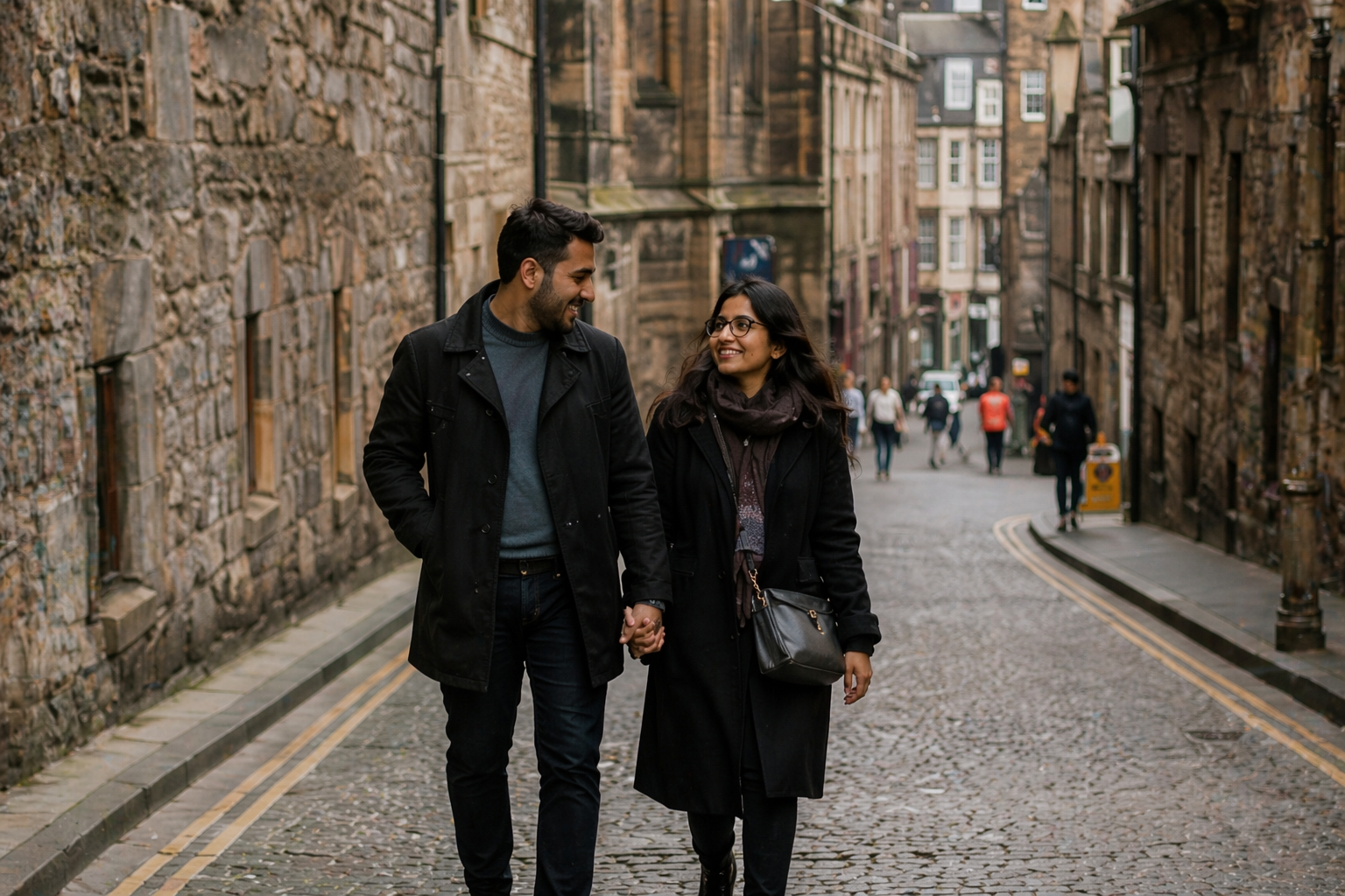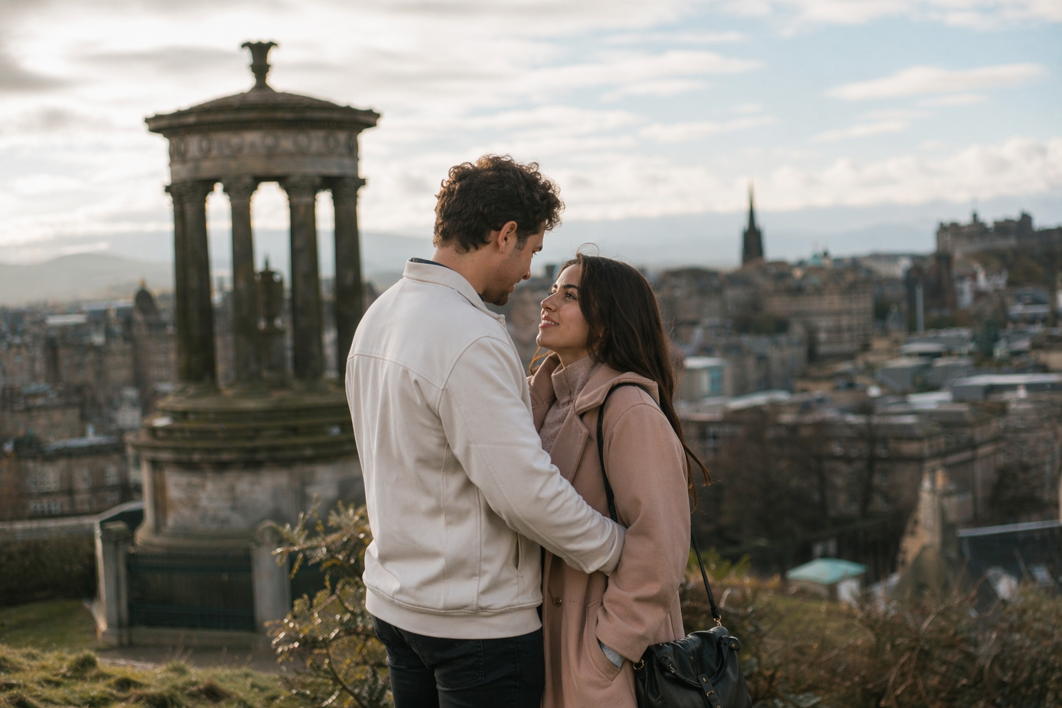 Edinburgh offers historic streets, castle views, old stone architecture, and romantic city backdrops.