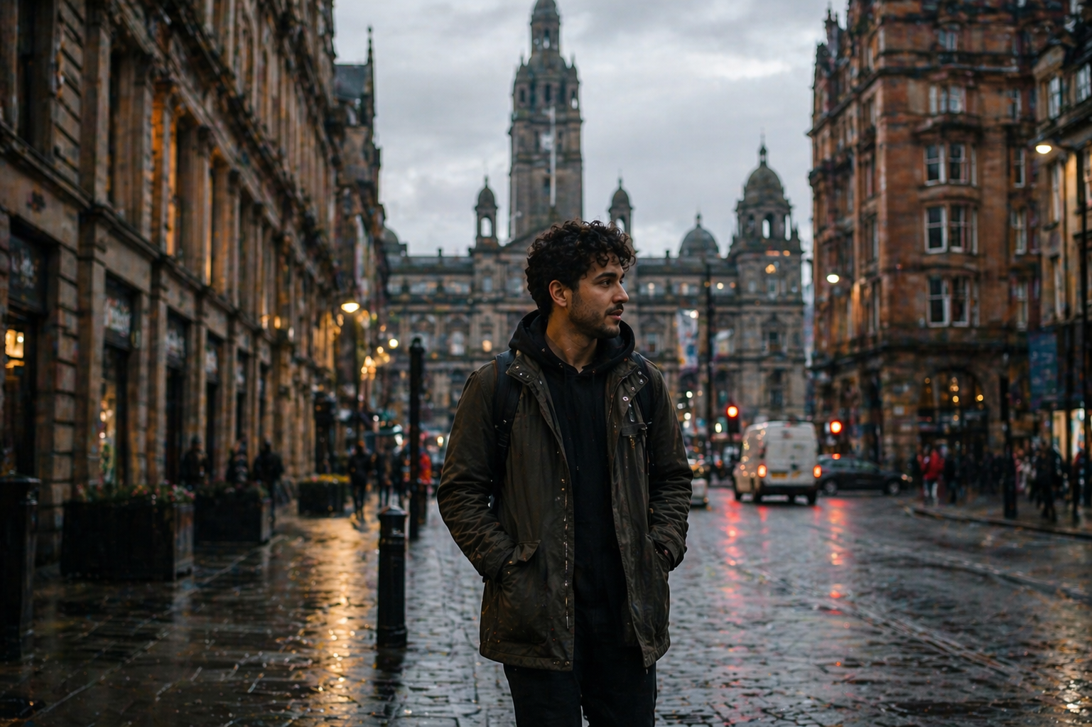Glasgow offers elegant architecture, green spaces, and atmospheric locations for refined portraits.